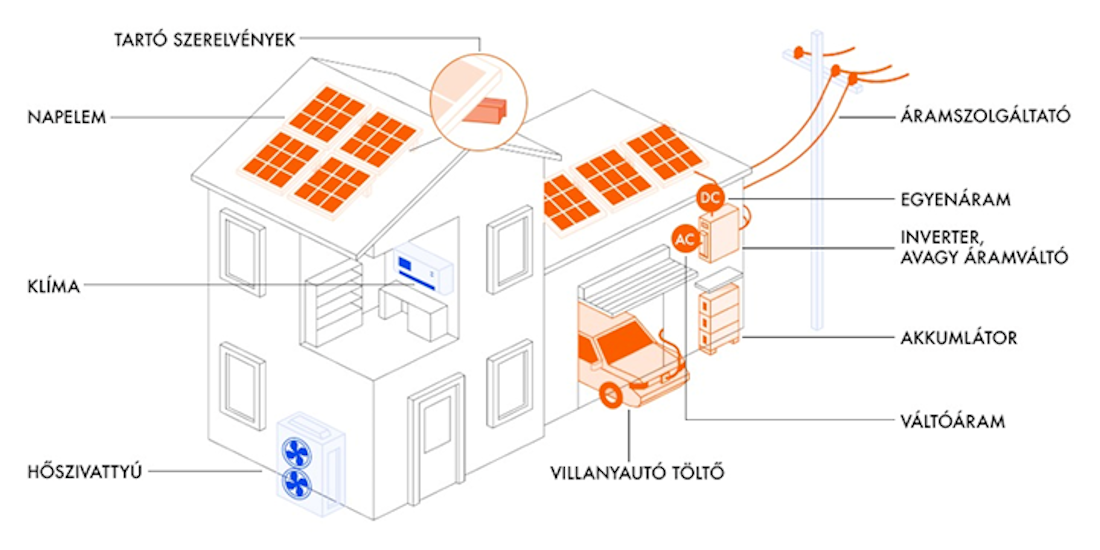 Egyszerű példával élve: a napelemek akkor termelnek a legtöbbet, amikor nem vagyunk otthon. Délben, napsütésben, munkaidőben. Este viszont: főzünk, világítunk, tévét nézünk, töltjük az autót vagy az eszközöket.